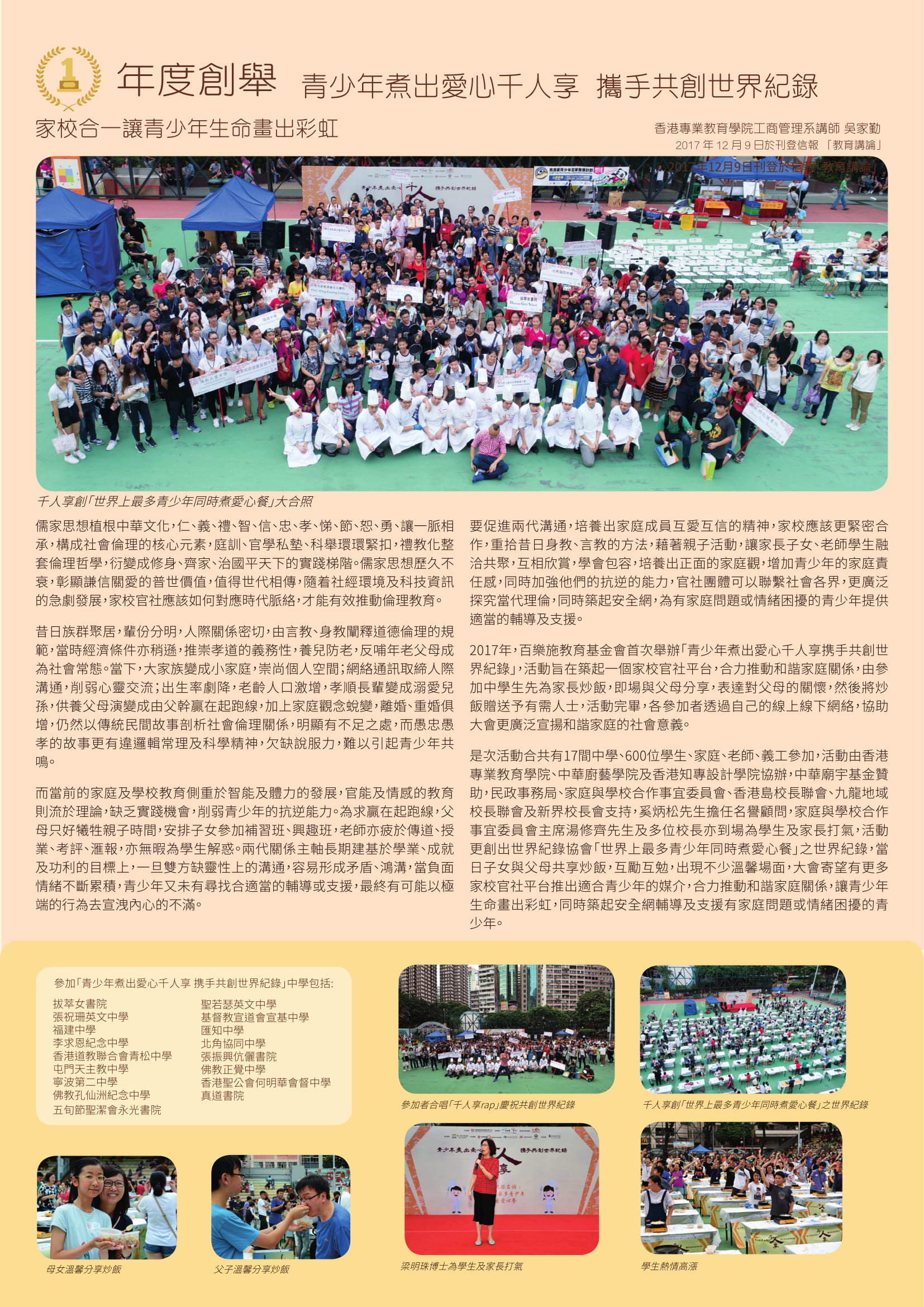 「青少年煮出愛心千人享 攜手共創世界紀錄」及第五屆「阿爸、阿媽,食飯喇!」